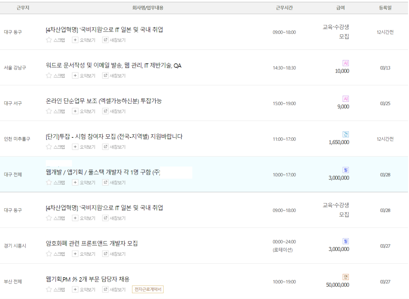 그래서 곧바로 내가 항상 일거리를 알아보던 알바몬, 알바천국을 뒤져보았다.