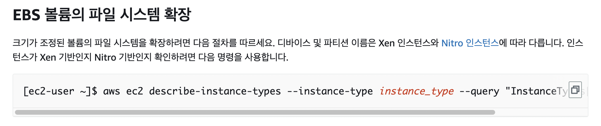 1. 파일시스템 타입을 확인해준다 - 인스턴스 종류에 따라 방법이 갈린다고 한다.
